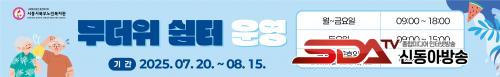 [½Åµ¿¾Æ¹æ¼Û ½ÃÈï½Ã=À̽ŵ¿±âÀÚ] ½ÃÈï½ÃºÏºÎ³ëÀκ¹Áö°ü(ÀÌÇÏ, ³ëÀκ¹Áö°ü)Àº ¿©¸§Ã¶ Æø¿°À¸·Î ÀÎÇÑ ¿Â¿­ÁúȯÀ» ¿¹¹æÇÏ°í ¾î¸£½ÅµéÀÇ °Ç°­°ú ¾ÈÀüÀ» Áö۱â À§ÇØ 7¿ù 20ÀϺÎÅÍ 8¿ù 15ÀϱîÁö ¹«´õÀ§½°Å͸¦ ¿î¿µÇÑ´Ù.