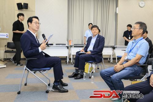 »çÁø=È­¼ºÆ¯·Ê½ÃÀåÀÌ 22ÀÏ ½Ã¹Î°¨»ç°üµé°ú ÇâÈÄ È°µ¿ ¹æÇâ¿¡ ´ëÇØ ÀǰßÀ» ³ª´©°í ÀÖ´Ù.
