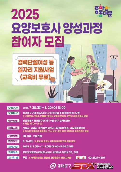 À̹ø °úÁ¤Àº °æ·Â´ÜÀý ¿©¼º µî¿¡°Ô Àü¹® ÀÚ°Ý Ãëµæ°ú Ãë¾÷ ±âȸ¸¦ Á¦°øÇϱâ À§ÇÑ ÀÏÀÚ¸® Áö¿ø»ç¾÷À¸·Î, ÃÑ 20¸íÀ» ¼±¹ßÇÑ´Ù. Âü¿©ÀÚ´Â 1Â÷ ¼·ù½É»ç¿Í 2Â÷ ¸éÁ¢À» °ÅÃÄ ÃÖÁ¾ ¼±Á¤µÇ¸ç ¼±¹ßµÈ Àοø¿¡°Ô´Â ¿ä¾çº¸È£»ç ÀÚ°Ý ÃëµæÀ» À§ÇÑ À̷С¤½Ç±â¡¤½Ç½À µî Àü °úÁ¤À» ¹«·á·Î Á¦°øÇÑ´Ù. ´Ü, ÀÚ°ÝÁõ ¹ß±Þ°ú °ü·ÃµÈ ºñ¿ëÀº º»ÀÎ ºÎ´ãÀÌ´Ù. ±³À° ¼ö·á ÈÄ¿¡´Â Ãë¾÷ ¿¬°è Áö¿øµµ ÀÌ·ïÁú ¿¹Á¤ÀÌ´Ù.