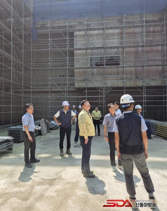 À̳¯ ¹Ú ºÎ½ÃÀåÀº ¸ÕÀú ¹®¿¹È¸°ü °Ç¸³ °ø»ç ÇöÀåÀ» ã¾Æ ÈްԽü³ ¿î¿µ, ¾óÀ½¹° ¹× »ý¼ö Á¦°ø µî ±Ù·ÎÀÚ º¸È£ Á¶Ä¡ ÀÌÇà ¿©ºÎ¸¦ È®ÀÎÇϰí, ¡°°ø»ç ÀÏÁ¤µµ Áß¿äÇÏÁö¸¸, ¹«¾ùº¸´Ù ±Ù·ÎÀÚµéÀÇ »ý¸í°ú ¾ÈÀüÀÌ ÃÖ¿ì¼±¡±À̶ó¸ç ¡°Æø¿° ½Ã°£´ë ÀÛ¾÷ ÁßÁö µî ź·ÂÀû ±Ù¹« ¿î¿µ¡±À» ÇöÀå¿¡ ´çºÎÇß´Ù.
