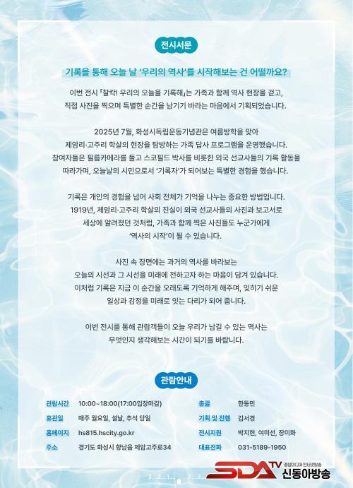À̹ø Àü½Ã´Â ±â·ÏÀ» ÅëÇØ °³ÀÎÀÇ °æÇèÀ» »çȸ¿Í ³ª´©¸ç ÇϳªÀÇ ¿ª»ç¸¦ ¸¸µé¾î°¡´Â ±âȸ¸¦ Á¦°øÇϰíÀÚ ±âȹµÈ °ÍÀ¸·Î, Áö³´Þ ÁøÇàµÈ ¡®2025³â ÁÖ¸» °¡Á· üÇèÇÁ·Î±×·¥¡¯¿¡ Âü¿©ÇÑ °ü¶÷°´µéÀÌ Á÷Á¢ ÃÔ¿µÇÑ »çÁø°ú ÀÎÅͺ並 ¹ÙÅÁÀ¸·Î ±¸¼ºµÆ´Ù.