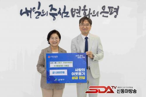 »ïÇ¥±×·ì¿¡¼ 1õ¸¸ ¿øÀ» »çȸº¹Áö°øµ¿¸ð±Ýȸ¿¡ ÁöÁ¤ ±âÅ¹ÇØ Àü´ÞÇß´Ù. Àü´Þ¹ÞÀº ÈÄ¿ø±ÝÀº ÀºÆò±¸ ÀÚ¸³Áغñû³â ÁÖ°Åȯ°æ°³¼±À» ÅëÇØ Åð¼Ò ÀÌÈÄ ¿¾ÇÇÑ ÁÖ°Åȯ°æ¿¡ ³õÀÎ ÀÚ¸³Áغñû³âÀÇ »îÀÇ ÁúÀ» °³¼±ÇÏ°í ¾ÈÁ¤ÀûÀÎ ÀÚ¸³À» µ½±â À§ÇØ »ç¿ëµÉ ¿¹Á¤ÀÌ´Ù.