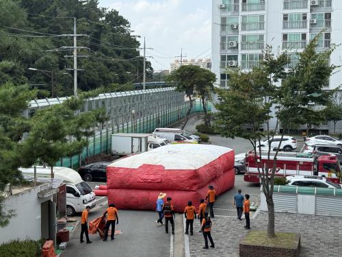 ÈÆ·Ã ³»¿ëÀº ¡â°ø±â¾ÈÀü¸ÅÆ® Àü°³ ¹× ±â´É Á¡°Ë ¡âÀÎ¸í±¸Á¶ ´ëÀÀ¹æ¾È ÅäÀÇ ¡âÀÛµ¿¿ø¸®¿Í ÁÖÀÇ»çÇ× ¼÷Áö ¡â°øµ¿ÁÖÅà °ü°èÀÚ ´ë»ó °ü¸® ¿ä·É ±³À° µîÀ¸·Î ÁøÇàµÆ´Ù. À̹ø ¾ÆÆÄÆ® ÈÆ·Ã¿¡ »ç¿ëµÈ °ø±â¾ÈÀü¸ÅÆ®´Â ÃÖ´ë 10Ãþ ³ôÀÌ¿¡¼µµ ºñ»óÅ»ÃâÀÌ °¡´ÉÇϸç Àü°³½Ã°£Àº ¾à 2ºÐ°¡·® ¼Ò¿äµÆ´Ù.