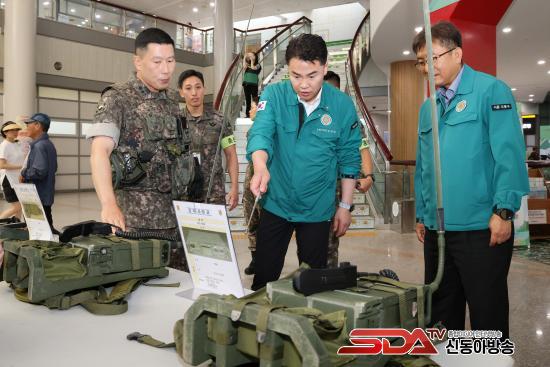ÇÑÆí 18ÀÏ ±¸Ã» 1Ãþ ·Îºñ¿¡¼´Â µµºÀ±¸´ë´ë ÁÖ°üÀÇ ±º Àåºñ Àü½Ãȸ°¡ ¿·È´Ù. Àü½Ãȸ´Â Áö¿ª ³» ¾Èº¸ ÀǽÄÀ» ³ôÀ̰í À»Áö¿¬½À °ø°¨´ë¸¦ Çü¼ºÇϱâ À§ÇØ ¸¶·ÃµÆ´Ù.