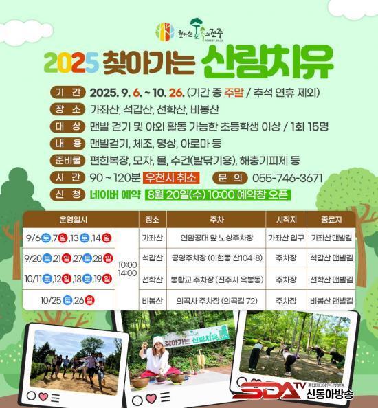 ¡®Ã£¾Æ°¡´Â »ê¸²Ä¡À¯¡¯´Â ¿À´Â 9¿ù 6ÀϺÎÅÍ 10¿ù 26ÀϱîÁö(Ãß¼® ¿¬ÈÞ Á¦¿Ü) ¸ÅÁÖ ÁÖ¸», 4°³ÀÇ µµ½Ã½£(°¡Á»ê, ¼®°©»ê, ¼±Çлê, ºñºÀ»ê)¿¡¼ ¿î¿µÇϸç, ¡®¿ù¾Æ»ê ½£¼ÓÀÇ ÁøÁÖ¡¯ »ê¸²Ä¡À¯ Áöµµ»ç°¡ µµ½Ã½£À¸·Î Á÷Á¢ ã¾Æ°¡´Â ¹«·á ÇÁ·Î±×·¥ÀÌ´Ù.