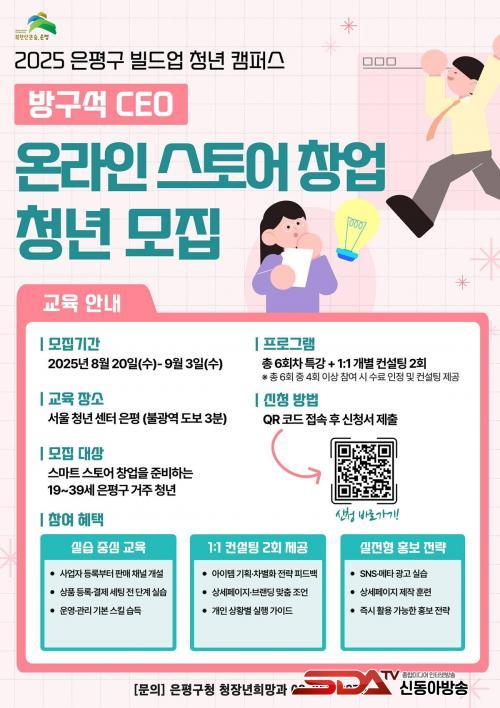 ¸ðÁýÀº ¿Â¶óÀÎ ½º¸¶Æ®½ºÅä¾î â¾÷À» Èñ¸ÁÇÏ´Â 19¼¼~39¼¼ û³âÀ» ´ë»óÀ¸·Î ÁøÇàµÇ¸ç, ÀºÆò±¸¿¡ °ÅÁÖÇϴ û³âÀ» ¿ì¼±À¸·Î 15¸í ¼±Á¤ÇÑ´Ù. ½ÅûÀ» Èñ¸ÁÇÏ¸é Æ÷½ºÅÍ¿¡ Àִ ť¾Ë(QR)Äڵ带 ÅëÇØ Á¢¼öÇÏ¸é µÈ´Ù. ÇÁ·Î±×·¥Àº ³»´Þ 10ÀϺÎÅÍ ÁÖ 1ȸ ÁøÇàµÈ´Ù.