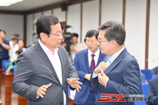 25ÀÏ ±¹È¸Åä·Ðȸ¿¡¼­ ÀÌÇöÀç Çϳ²½ÃÀå(¿ÞÂÊ)°ú ±èµ¿¿¬ °æ±âµµÁö»ç(¿À¸¥ÂÊ)ÀÌ ¡®°æ±âµµ ¹Ì±º ¹Ýȯ°ø¿© ±¸¿ª °³¹ß Ȱ¼ºÈ­ ¹æ¾È¡¯¿¡ ´ëÇØ À̾߱⸦ ³ª´©°í ÀÖ´Ù.