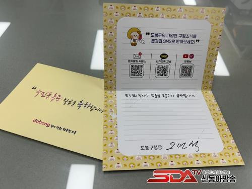 [½Åµ¿¾Æ¹æ¼Û µµºÀ±¸=À̽ŵ¿±âÀÚ] ¼­¿ï µµºÀ±¸°¡ ¼ºÀÎÀ¸·Î¼­ÀÇ Ã¹°ÉÀ½À» ³»µó´Â 17¼¼ ±¸¹Î¿¡°Ô ÀÌ´ÞºÎÅÍ Áֹεî·ÏÁõ ¹ß±Þ ½Ã Áֹεî·ÏÁõ°ú ÇÔ²² ÃàÇÏÄ«µå¸¦ Àü´ÞÇϰí ÀÖ´Ù°í ¹àÇû´Ù.