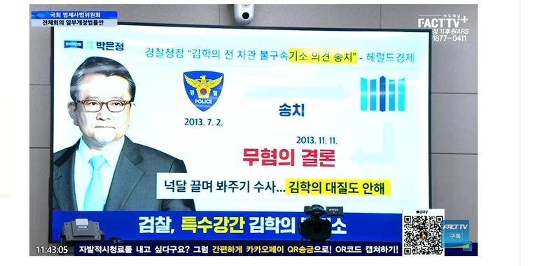 ¹ÚÀºÁ¤ ÀÇ¿øÀº ±èÇÐÀÇ »ç°Ç°ú °ËÂûÀÌ °è¼Ó ±â°¢ÇÏ´ø ±è¼ºÈÆ, À̱¤¿ì »ç°ÇÀ» ¾ð±ÞÇÏ¸ç °ËÂû °³ÇõÀ» °Á¶ÇÑ °ÍÀÌ´Ù.