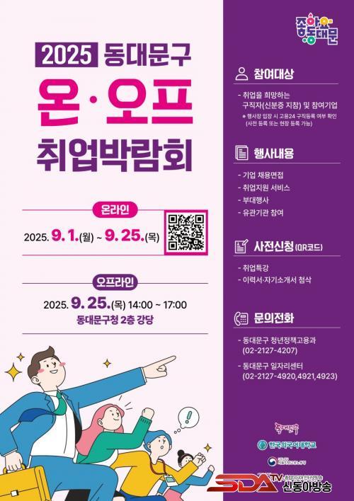 ÇÑÆí, µ¿´ë¹®±¸´Â À̹ø Ãë¾÷¹Ú¶÷ȸ¸¦ ¿Â¶óÀΰú ¿ÀÇÁ¶óÀÎ ¾ç¹æÇâÀ¸·Î ¿î¿µÇØ ±¸Á÷ÀÚ°¡ ¿øÇÏ´Â ¹æ½ÄÀ¸·Î º¸´Ù ½±°Ô Âü¿©ÇÒ ¼ö ÀÖµµ·Ï Çß´Ù. Çà»ç´Â µ¿´ë¹®±¸ ÁÖ°üÀ¸·Î Çѱ¹¿Ü±¹¾î´ëÇб³, ¼¿ïÁö¹æ°í¿ë³ëµ¿Ã», ¼¿ï½Ã50Ç÷¯½ºÀç´Ü µ¿ºÎÄ·ÆÛ½º°¡ ÈÄ¿øÇϸç, µ¿´ë¹®±¸ ¹× Àα٠ÀÚÄ¡±¸ÀÇ 30¿© °³ ±â¾÷ÀÌ ÇÔ²²ÇÑ´Ù.