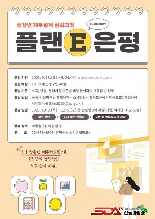 »ç¾÷ ´ë»óÀº ÀºÆò±¸¿¡ °ÅÁÖÇÏ´Â 40¼¼ºÎÅÍ 64¼¼±îÁö ÁßÀå³â 40¸íÀÌ´Ù. ½ÅûÀÚ ¸ðÁý ±â°£Àº ¿À´Â 15ÀϺÎÅÍ ¿À´Â 24ÀϱîÁö 10Àϰ£À̸ç, ½ÅûÇÏ·Á¸é ÀºÆò±¸Ã» ´©¸®Áý ¼Ò½Ä¡¤¾Ë¸² ³» °Á±³À°¿¡¼ ½Åû¼¸¦ ³»·Á¹Þ¾Æ ÀÛ¼º ÈÄ À̸ÞÀÏ(kimdj756@ep.go.kr)·Î Á¦ÃâÇÏ¸é µÈ´Ù.