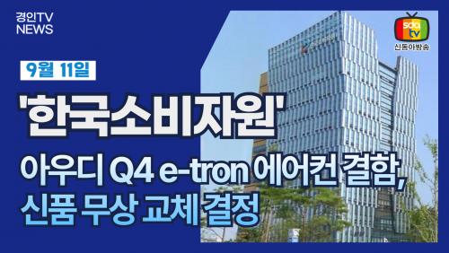 ¼ÒºñÀÚºÐÀïÁ¶Á¤À§¿øÈ¸(À§¿øÀå ÇÑ¿ëÈ£, ÀÌÇÏ ¡®À§¿øÈ¸¡¯)´Â ¾Æ¿ìµð Q4 e-tron 40 ¹× ÆÄ»ý¸ðµ¨ Â÷·®¿¡¼­ ¹ß»ýÇÑ °øÁ¶ÀåÄ¡(¿¡¾îÄÁ) °áÇÔ°ú °ü·ÃÇØ, °ü·Ã ºÎǰÀ» ¹«»óÁ¡°Ë ¹× ±³Ã¼Çϵµ·Ï 9ÀÏ °áÁ¤Çß´Ù.