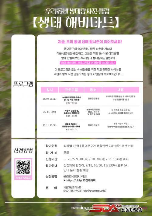ƯÈ÷ ÁֹΠÂü¿©Çü ÇÁ·Î±×·¥ÀΡ¸¿ì¸®µ¿³× »ýÅÂŽ»ç²Û Ŭ·´¡¹¡®»ýÅÂ ÇØºñŸƮ¡¯¿Í ¡®Àå¾Èµ¿ ½Ä¹°´ëŽ»ç¡¯¸¦ ÅëÇØ ÁֹεéÀÌ °ø¿øÀÇ »ý¹°´Ù¾ç¼ºÀ» Á÷Á¢ °üÂû¡¤±â·ÏÇÏ°í ¼­½Äó Á¶¼º¿¡ Âü¿©ÇÒ ¼ö ÀÖµµ·Ï Çϰí ÀÖ´Ù. ¼öÁýµÈ µ¥ÀÌÅÍ´Â Áö¿ª »ýŰè ȸº¹ ¸ðµ¨ ±¸Ãà¿¡ Ȱ¿ëµÈ´Ù.