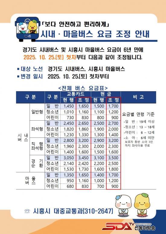 [½Åµ¿¾Æ¹æ¼Û ½ÃÈï½Ã=À̽ŵ¿±âÀÚ] ½ÃÈï½Ã´Â ¿À´Â 10¿ù 25ÀÏ Ã¹Â÷ºÎÅÍ °æ±âµµ ½Ã³»¹ö½º ¹× ½ÃÈï½Ã ¸¶À»¹ö½º ¿ä±ÝÀ» Á¶Á¤ÇÑ´Ù.