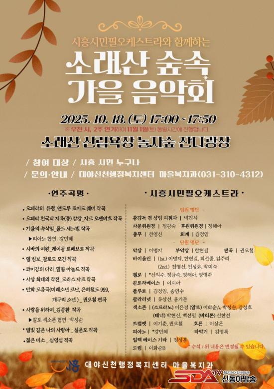 [½Åµ¿¾Æ¹æ¼Û ½ÃÈï½Ã=À̽ŵ¿±âÀÚ] ½ÃÈï½Ã ´ë¾ß¤ý½ÅõÇàÁ¤º¹Áö¼¾ÅÍ´Â ¿À´Â 10¿ù 18ÀÏ ¼Ò·¡»ê »ï¸²¿åÀå ³îÀÚ½£ Àܵð±¤Àå¿¡¼­ ´ë¾ß¤ý½Åõµ¿ Áö¿ª ÁÖ¹ÎÀ» À§ÇÑ ¡®¼Ò·¡»ê ½£¼Ó °¡À» À½¾Çȸ¡¯¸¦ °³ÃÖÇÑ´Ù.