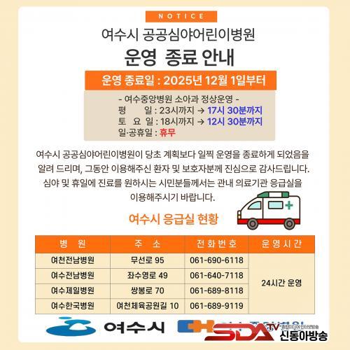 ½Ã °ü°èÀÚ´Â ¡°¿©¼ö½Ã °ø°ø½É¾ß¾î¸°À̺´¿øÀº Áö¿ª ºÎ¸ðµéÀÌ °¡Àå ÇÊ¿ä·Î ÇÏ´Â Çʼö ÀÇ·á ¼ºñ½º Áß Çϳª¿´´Ù¡±¸ç ¡°À̹ø Á¶±â Á¾·á´Â º´¿øÀÇ ¿äûÀ¸·Î ºÒ°¡ÇÇÇÏ°Ô °áÁ¤µÈ »óȲÀÎ ¸¸Å 2026³â¿¡´Â º¸´Ù ¾ÈÁ¤µÈ ü°è·Î ÀçÁ¤ºñÇØ ¿î¿µÀÌ Àç°³µÉ ¼ö ÀÖµµ·Ï ³ë·ÂÇϰڴ١±°í ¹àÇû´Ù.