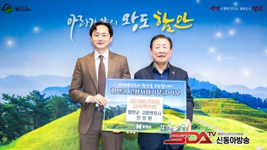 [½Åµ¿¾Æ¹æ¼Û °æ³²ÇÔ¾È=À̽ŵ¿±âÀÚ] ÇԾȱºÀº Áö³ 1ÀÏ ¹ý¹«¹ýÀÎ ±Ý° ¼Ò¼Ó ¾ÈÁ¤È¯ º¯È£»ç°¡ °íÇâ»ç¶û±âºÎ±Ý 200¸¸ ¿øÀ» ±âŹÇß´Ù°í ¹àÇû´Ù. ¾ÈÁ¤È¯ º¯È£»ç´Â ¹ý¹«¹ýÀÎ ±Ý°¿¡¼ ¹ÎÇü»ç »ç°Ç°ú ±â¾÷ ÀÚ¹®, °ø°ø±â°ü Áö¿ø µîÀ» ¸Ã¾Æ Ȱµ¿Çϰí ÀÖÀ¸¸ç Áö¿ª°úÀÇ ¿¬´ë¸¦ Áß¿äÇÏ°Ô »ý°¢ÇØ ¿Â ¹ýÁ¶ÀÎÀ¸·Î ¾Ë·ÁÁ® ÀÖ´Ù. À̹ø ±âºÎ´Â °íÇâ ¹ßÀü¿¡ ±â¿©ÇϰíÀÚ ÇÏ´Â ¸¶À½¿¡¼ ÀÌ·ïÁ³´Ù.