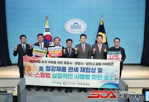 12ÀÏ ¼­¿ï ±¹È¸ ¼ÒÅë°ü¿¡¼­ ¿­¸°¡®´çÁø¡¤Æ÷Çס¤±¤¾ç ö°­µµ½Ã °øµ¿±âÀÚȸ°ß¡¯¿¡¼­ ¼¼ µµ½Ã´Â ¹Ì±¹ÀÇ °íÀ² ö°­Á¦Ç° °ü¼¼ ÀçÇù»ó°ú¡®K-½ºÆ¿¹ý¡¯ ½ÃÇà·É ¸¶·ÃÀ» Áß½ÉÀ¸·Î ÇÑ ¹üÁ¤ºÎ Â÷¿øÀÇ Æ¯´Ü ´ëÃ¥À» ¿ä±¸Çß´Ù. À̳¯ ±âÀÚȸ°ß¿¡´Â ´çÁø¡¤Æ÷Çס¤±¤¾ç 3°³ µµ½Ã ½ÃÀå, ±¹È¸ÀÇ¿ø, »ó°øÈ¸ÀÇ¼Ò È¸Àå´Ü µî ÁÖ¿ä °ü°èÀÚµéÀÌ Âü¼®Çß´Ù.