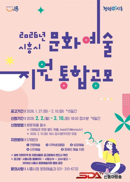 °ø°í ±â°£Àº 1¿ù 27ÀϺÎÅÍ 2¿ù 10ÀϱîÁöÀ̸ç, ½Åû ±â°£Àº 2¿ù 2ÀϺÎÅÍ 10ÀÏ ¿ÀÈÄ 6½Ã±îÁö´Ù. Âü¿©¸¦ Èñ¸ÁÇÏ´Â ´Üü ¹× °³ÀÎÀº ½ÃÈï½Ãû ¹®È¿¹¼ú°ú¿¡ Á÷Á¢ ¹æ¹®Çؼ ½ÅÃ»ÇØ¾ß Çϸç, ÇØ´ç ±â°£ ³»¿¡ ¿øº» µ¿ÀÏ ¼·ù¸¦ ´ã´çÀÚ ÀüÀÚ¿ìÆí(keesh21@korea.kr)À¸·Î º°µµ Á¦ÃâÇØ¾ß ÇÑ´Ù.