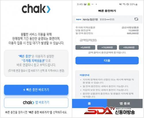 ¿øÈ°ÇÑ ÀÌ¿ëÀ» À§Çؼ´Â ÆÇ¸Å °³½Ã 1~2ÀÏ Àü±îÁö ¡®chak¡¯ ¾Û¿¡¼ ¿©¼ö»ç¶û»óǰ±ÇÀ» ¡®ÁÖ°Å·¡ »óǰ±Ç¡¯À¸·Î ¼³Á¤ÇØ¾ß ÇÑ´Ù. À̸¦ ¼³Á¤ÇÏÁö ¾ÊÀ» °æ¿ì ºü¸¥ ÃæÀü ¹öưÀ» ´·¯µµ ±âÁ¸ ¸ÞÀΠȸéÀ¸·Î À̵¿µÅ ´ë±â ½Ã°£ÀÌ ±æ¾îÁú ¼ö ÀÖ´Ù.