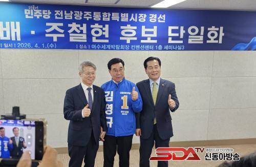 ¹ÎÇü¹è È常¦ ÇâÇØ¼´Â ¡°ÁÖöÇö Èĺ¸ÀÇ ¶æ°ú ºñÀüÀ» À̾î¹Þ¾Æ Àü³²¡¤±¤ÁÖ ÅëÇÕÆ¯º°½ÃÀÇ ¼º°øÀû Ãâ¹ü°ú ±ÕÇü¹ßÀüÀ» ¹Ýµå½Ã À̲ø¾î ÁÖ±æ ±â´ëÇÑ´Ù¡±°í ÀüÇß´Ù.