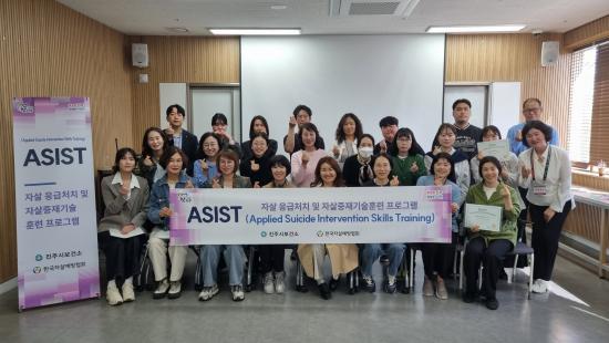 ¡®ÀÚ»ìÁßÀç±â¼ú ÈÆ·Ã ÇÁ·Î±×·¥ ASIST(Applied Suicide Intervention Skills Training)¡¯´Â 1983³â ij³ª´Ù¿¡¼­ °³¹ßµÈ Àڻ쿹¹æ Àü¹® ±³À° ÇÁ·Î±×·¥À¸·Î, ÁøÁֽô 2014³âºÎÅÍ ÇöÀç±îÁö ÃÑ 33±â¿¡ °ÉÃÄ ASIST ±³À°À» Áö¼ÓÀûÀ¸·Î ¿î¿µÇØ ¿À°í ÀÖÀ¸¸ç, °æ³²Áö¿ª¿¡¼­´Â À¯ÀÏÇÏ°Ô ÇØ´ç °úÁ¤À» ¿î¿µÇϸç Áö¿ª»çȸ Àڻ쿹¹æ Àη ¾ç¼º¿¡ ±â¿©Çϰí ÀÖ´Ù.