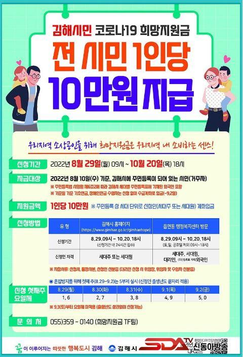 Áö±Þ´ë»óÀº 8¿ù 10ÀÏ ±âÁØ ±èÇØ½Ã¿¡ Áֹεî·ÏÀ» µÐ ½Ã¹ÎÀ¸·Î 1Àδç 10¸¸¿ø¾¿ Áö±ÞÇϸç ÇØ¿ÜÀ̹ÎÀÚ, ¿µÁÖ±ÇÀڷμ ±èÇØ½Ã ¼¼´ëº° Áֹεî·ÏÇ¥¿¡ ±âÀçµÈ ¿Ü±¹Àεµ Áö±Þ´ë»ó¿¡ Æ÷ÇԵ˴ϴÙ.