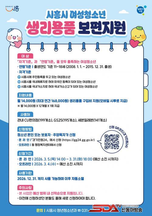 Áö¿ø ´ë»óÀº ½ÃÈï½Ã¿¡ Áֹεî·Ï ¶Ç´Â ¿Ü±¹ÀÎ µî·Ï¤ý±¹³»°Å¼Ò½Å°í°¡ µÅ ÀÖ´Â 11¼¼~18¼¼(2008³â 1¿ù 1ÀÏ~2015³â 12¿ù 31ÀÏ Ãâ»ý) ¿©¼ºÃ»¼Ò³âÀÌ´Ù. ´Ù¸¸, ¼ºÆòµî°¡Á·ºÎ ¿©¼ºÃ»¼Ò³â »ý¸®¿ëǰ ¹Ù¿ìó Áö¿ø ´ë»óÀÚ´Â Áߺ¹ ½ÅûÀÌ ºÒ°¡ÇÏ´Ù.