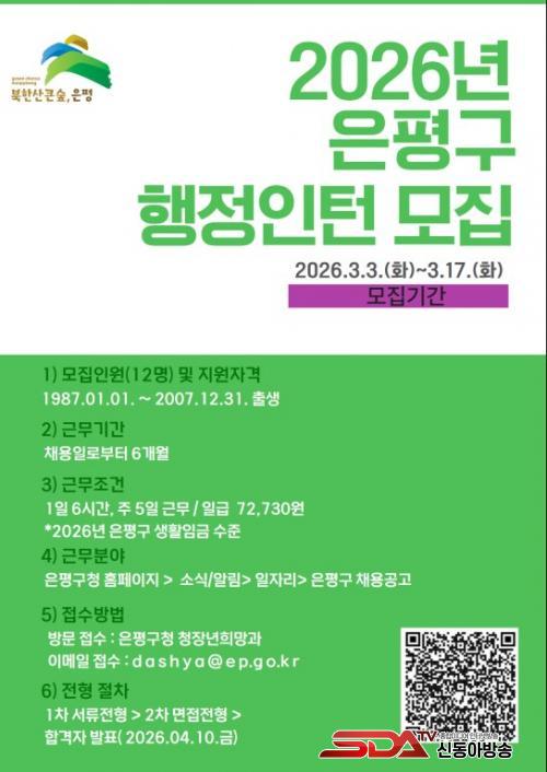 ¸ðÁý ´ë»óÀº ÀºÆò±¸¿¡ °ÅÁÖÇÏ´Â 19~39¼¼ ¹ÌÃë¾÷ û³âÀÌ´Ù. ¼±¹ßµÈ ÇàÁ¤ÀÎÅÏÀº 5¿ùºÎÅÍ 10¿ù±îÁö 6°³¿ù°£ ÀºÆò¿ª»çÇÑ¿Á¹Ú¹°°ü, ÀºÆò¹®È¿¹¼úȸ°ü, ±¸Ã» µî ÃÑ 12°³ ±Ù¹«Ã³¿¡ ¹èÄ¡µÇ¾î ÇàÁ¤ »ç¹«¸¦ ¼öÇàÇÑ´Ù.