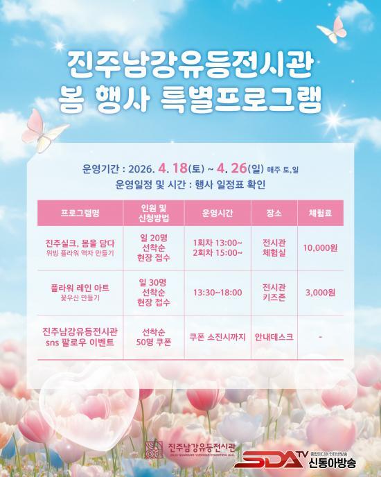 ÁøÁÖ³²°À¯µîÀü½Ã°üÀº ¿À´Â 4¿ù 18ÀϺÎÅÍ 26ÀϱîÁö ¸ÅÁÖ ÁÖ¸», Àü½Ã°üÀ» ã´Â ¹æ¹®°´µéÀÌ Á÷Á¢ Âü¿©Çϰí Áñ±æ ¼ö ÀÖ´Â ¡®À¯µî°ú ÇÔ²²ÇÏ´Â º½¸ÂÀÌ Çà»ç¡¯¸¦ °³ÃÖÇÑ´Ù°í ¹àÇû´Ù.