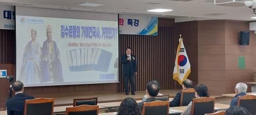 [½Åµ¿¾Æ¹æ¼Û´º½º=½Åµ¿È£±âÀÚ] Áö³­ 3¿ù 26ÀÏ ÀÏ¿äÀÏ ¿ÀÈÄ 3½Ã¿¡ ±èÇØ»ó°øÈ¸ÀÇ¼Ò °­´ç¿¡¼­ ¿ª»ç¹®È­ Ư°­ÀÌ ¿­·È½À´Ï´Ù. »ç´Ü¹ýÀÎ ´ëÇÑ»ç¶û À̿Ͽµ ÇмúÀ̻簡 ÃʺùµÇ¾î ¡®±è¼ö·Î¿ÕÀÇ °¡¾ß°Ç±¹ °ÅÁþÀΰ¡? ±èÇØ´Â ÀÓ³ª°¡ ¾Æ´Ï´Ù¡¯´Â ÁÖÁ¦·Î 2½Ã°£ µ¿¾È ÁøÇàµÇ¾ú´Âµ¥¡¦