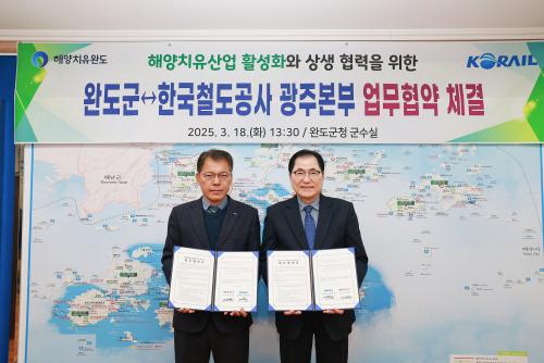 [½Åµ¿¾Æ¹æ¼Û ¿Ïµµ=À̼±Á¾ ±âÀÚ] ¿Ïµµ±º°ú Çѱ¹Ã¶µµ°ø»ç(ÄÚ·¹ÀÏ) ±¤ÁÖº»ºÎ°¡ ÇØ¾çÄ¡À¯»ê¾÷ Ȱ¼ºÈ­¿Í Áö¿ª °ü±¤ öµµ ¿¬°è »óǰ ¿î¿µÀ» À§ÇØ ¾÷¹« Çù¾àÀ» ü°áÇß´Ù. Çù¾à½ÄÀº Áö³­ 3¿ù 18ÀÏ ¿Ïµµ±ºÃ»¿¡¼­ ÁøÇàµÆÀ¸¸ç, ½Å¿ìö ¿Ïµµ±º¼ö¿Í ±è¿µÁø ÄÚ·¹ÀÏ ±¤ÁÖº»ºÎ¡¦