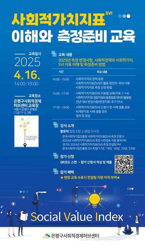[½Åµ¿¾Æ¹æ¼Û ÀºÆò±¸=À̽ŵ¿±âÀÚ] ÀºÆò±¸´Â ³»´Þ 16ÀÏ ¼ö¿äÀÏ ¿ÀÈÄ 2½ÃºÎÅÍ ÀºÆò±¸ »çȸÀû°æÁ¦Çãºê¼¾ÅÍ¿¡¼­ »çȸÀû°æÁ¦±â¾÷µéÀ» ´ë»óÀ¸·Î ¡®2025³â »çȸÀû°¡Ä¡ÁöÇ¥(SVI) ÀÌÇØ¿Í ÃøÁ¤Áغñ ±³À°¡¯À» ½Ç½ÃÇÑ´Ù°í ¹àÇû´Ù. »çȸÀû°¡Ä¡ÁöÇ¥(Social Value Index : SVI)´Â »çȸ¡¦