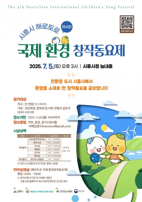 [½Åµ¿¾Æ¹æ¼Û ½ÃÈï½Ã=À̽ŵ¿±âÀÚ] ½ÃÈï½Ã°¡ ÁÖÃÖÇϰí, ÇØ·ÎÅä·Î ±¹Á¦ ȯ°æ¹®È­»ç¾÷´ÜÀÌ ÁÖ°üÇÏ´Â ¡®Á¦4ȸ ½ÃÈï½Ã ÇØ·ÎÅä·Î ±¹Á¦ ȯ°æÃ¢ÀÛµ¿¿äÁ¦¡¯ÀÇ Ã¢ÀÛ°î °ø¸ð°¡ ½ÃÀ۵ƴÙ. À̹ø µ¿¿äÁ¦´Â ģȯ°æµµ½Ã ½ÃÈï½Ã¸¦ ¾Ë¸®°í, ȯ°æÀ» ¼ÒÀç·Î ÇÑ ¿ì¼öÇÑ Ã¢ÀÛµ¿¿ä¸¦ ¹ß±¼¤ýº¸¡¦