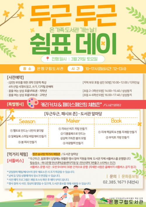 ÀºÆò±¸¸³µµ¼­°ü, ¿À´Â 29ÀÏ ¡®µÎ±ÙµÎ±Ù, ½°Ç¥µ¥ÀÌ!¡¯ ÁøÇà