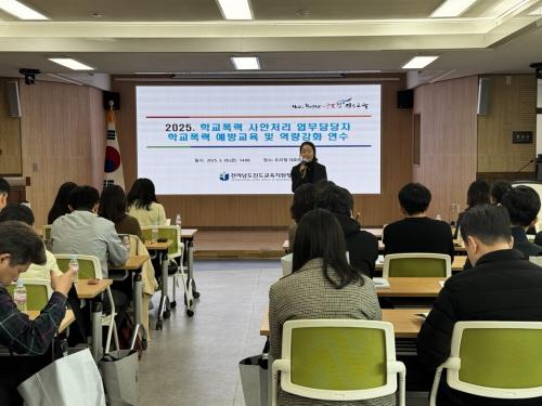 [½Åµ¿¾Æ¹æ¼Û Àü³²Áøµµ=À̽ŵ¿±âÀÚ] Àü¶ó³²µµÁøµµ±³À°Áö¿øÃ»Àº Áö³­ 3¿ù 28ÀÏ, Áøµµ±³À°Áö¿øÃ» ´ëȸÀǽǿ¡¼­ °ü³» ÃÊ¡¤Áß¡¤°í ±³°¨ ¹× Çб³Æø·Â ¾÷¹« ´ã´ç ±³»ç¸¦ ´ë»óÀ¸·Î ¡®Çб³Æø·Â ¿¹¹æ ¹× »ç¾Èó¸® ¿ª·® °­È­ ¿¬¼ö¡¯¸¦ ÁøÇàÇß´Ù. À̹ø ¿¬¼ö¿¡¼­´Â, 2025Çг⵵ºÎ¡¦