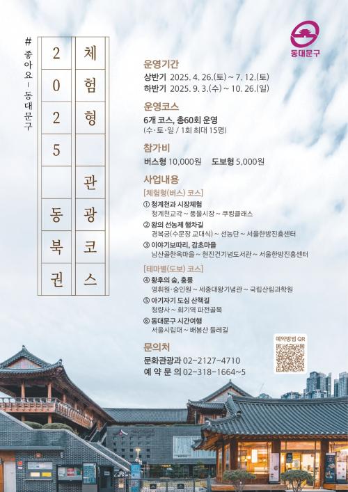 [½Åµ¿¾Æ¹æ¼Û µ¿´ë¹®±¸=À̽ŵ¿±âÀÚ] ¼­¿ï µ¿´ë¹®±¸´Â 4¿ù 26ÀϺÎÅÍ 10¿ù 26ÀϱîÁö ¡®µ¿ºÏ±Ç üÇèÇü °ü±¤ÄÚ½º¡¯¸¦ ÃÑ 60ȸ¿¡ °ÉÃÄ ¿î¿µÇÑ´Ù°í 3ÀÏ ¹àÇû´Ù. ¿ÃÇØ ÇÁ·Î±×·¥Àº À۳⺸´Ù ´õ¿í dz¼ºÇØÁø üÇè Ȱµ¿°ú ½Å±Ô ÄÚ½º ±¸¼ºÀ¸·Î ¹æ¹®°´µé¿¡°Ô ´Ùä·Î¿î Áñ°Å¿òÀ» ¼±»ç¡¦