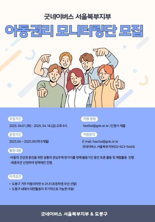 [½Åµ¿¾Æ¹æ¼Û µµºÀ±¸=À̽ŵ¿±âÀÚ] ¼­¿ï µµºÀ±¸°¡ ¿À´Â 4¿ù 18ÀϱîÁö ¾Æµ¿±Ç¸®¸ð´ÏÅ͸µ´Ü(Good motion) ´Ü¿øÀ» ¸ðÁýÇÑ´Ù. ¾Æµ¿±Ç¸®¸ð´ÏÅ͸µ´ÜÀº ¸Å³â ¾Æµ¿µéÀÌ ¾Æµ¿±Ç¸® ºÐ¾ßº° ÁÖÁ¦¸¦ ¼±Á¤, Áö¿ª»çȸ Á¶»ç Ȱµ¿°ú Á¤Ã¥ Á¦¾ÈÀ» ÅëÇØ ¾Æµ¿ÀÌ ÇູÇÑ ¼¼»óÀ¸·ÎÀÇ ÁÁÀº º¯¡¦