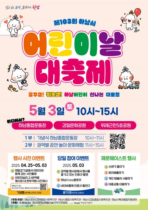 [½Åµ¿¾Æ¹æ¼Û Çϳ²½Ã=À̽ŵ¿±âÀÚ] Çϳ²½Ã´Â Á¦103ȸ ¾î¸°À̳¯À» ¸Â¾Æ ¿À´Â 5¿ù 3ÀÏ ¿ÀÀü 10½ÃºÎÅÍ ¿ÀÈÄ 3½Ã±îÁö Çϳ²Á¾ÇտÀå, °¨ÀϹ®È­°ø¿ø, À§·Ê±Ù¸°5È£°ø¿ø µî 3°³ ±Ç¿ª¿¡¼­ ¡®²Þ²Ù°í! ¶Ù³î°í! Çϳ²¾î¸°ÀÌ ½Å³ª´Â ´ë¸ðÇ衯À» ÁÖÁ¦·Î ¾î¸°À̳¯ ´ëÃàÁ¦¸¦ ¿¬´Ù. À̹ø¡¦