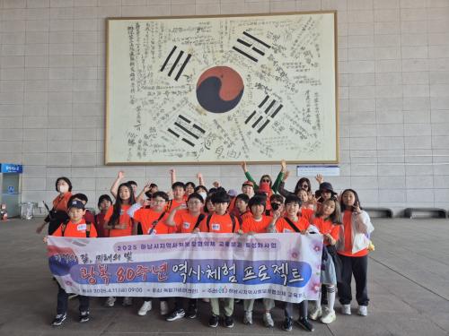[½Åµ¿¾Æ¹æ¼Û Çϳ²½Ã=À̽ŵ¿±âÀÚ] Áö³­ 11ÀÏ Çϳ²½ÃÁö¿ª»çȸº¸ÀåÇùÀÇü´Â ±³À°ºÐ°ú Ư¼ºÈ­»ç¾÷À¸·Î ÃßÁøµÈ "±â¾ïÀÇ ±æ, ¹Ì·¡ÀÇ ºû: ±¤º¹ 80Áֳ⠿ª»çüÇè ÇÁ·ÎÁ§Æ®"°¡ Ãæ³² õ¾È½Ã¿¡ À§Ä¡ÇÑ µ¶¸³±â³ä°ü¿¡¼­ ¼º°øÀûÀ¸·Î °³ÃֵǾú´Ù°í ÀüÇß´Ù. À̹ø Çà»ç¿¡´Â °ü³» Ãʵ
