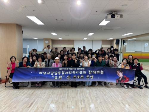 [½Åµ¿¾Æ¹æ¼Û Çϳ²½Ã=À̽ŵ¿±âÀÚ] Æ®·ÎÆ® °¡¼ö À¯¹ÎÀº Áö³­ 18ÀÏ ¿ÀÈÄ 2½Ã 30ºÐ Çϳ²½Ã°¨ÀÏÁ¾ÇÕ»çȸº¹Áö°ü(»çȸº¹Áö¹ýÀÎ ÈÞ¸Õº¹Áöȸ ¿î¿µ) °­´ç¿¡¼­ Àç´É±âºÎ È¿(üø)»ç¶û ¹®È­°ø¿¬À» ÁøÇàÇß´Ù. º» °ø¿¬¿¡ ÃÊ´ë °¡¼ö·Î ³ª¼± Æ®·ÎÆ® °¡¼ö À¯¹ÎÀº 2022³â MBN Æ®·ÎÆ® ¿Àµð¡¦