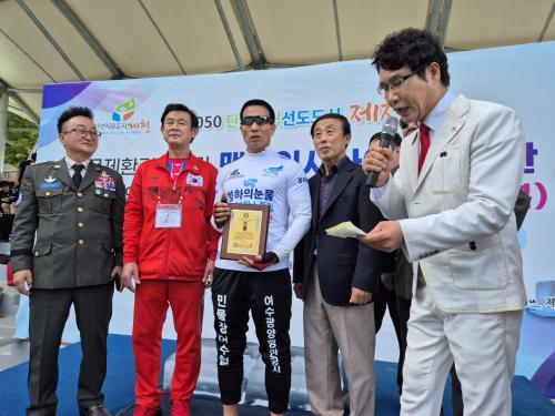 [½Åµ¿¾Æ¹æ¼Û Àü³²°íÈï=¹Ú±¤¿Á±âÀÚ] ±¹Á¦È¯°æ¿îµ¿°¡ÀÌÀÚ °íÈﱺ È«º¸´ë»çÀÎ ¡®¸Ç¹ßÀÇ »ç³ªÀÌ¡¯ Á¶½Âȯ ¾¾°¡ ¾óÀ½ À§ ¸Ç¹ß·Î ¿À·¡ ¼­ÀÖ±â 5½Ã°£ 10ºÐ µ¿¾È ¼º°øÇϸç, ÀÚ½ÅÀÇ ¼¼°è½Å±â·ÏÀ» ¶Ç´Ù½Ã °æ½ÅÇß´Ù. 17ÀÏ, ÃæºÏ Á¦Ãµ½Ã Á¦ÃµÃ౸¼¾ÅÍ 1±¸Àå¿¡¼­ ¿­¸° ¡®Á¦2ȸ Á¦Ãµ¡¦