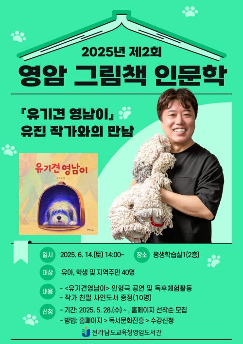 [½Åµ¿¾Æ¹æ¼Û Àü³²¿µ¾Ï=À̽ŵ¿±âÀÚ] Àü¶ó³²µµ±³À°Ã»¿µ¾Ïµµ¼­°üÀº ¿À´Â 6¿ù 14ÀÏ(±Ý) ¿ÀÈÄ 2½Ã, À¯¾Æ, Çлý, Áö¿ª¹ÎÀ» ´ë»óÀ¸·Î ¡ºÀ¯±â°ß ¿µ³²ÀÌ¡»ÀúÀÚ À¯Áø ÀÛ°¡¸¦ ÃÊûÇÏ¿© ±×¸²Ã¥ Àι®ÇÐ °­¿¬À» ¿î¿µÇÑ´Ù. À̹ø °­¿¬Àº 2025³â ¿µ¾Ïµµ¼­°ü ±×¸²Ã¥ Àι®ÇÐ ÇÁ·Î±×·¥ÀÇ¡¦