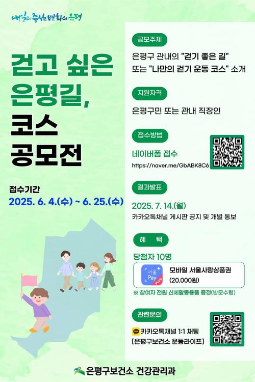 [½Åµ¿¾Æ¹æ¼Û ÀºÆò±¸=À̽ŵ¿±âÀÚ] ¼­¿ï ÀºÆò±¸´Â °È±â ÁÁÀº »ýȰȯ°æÀ» Á¶¼ºÇÏ°í °È±â ½Çõ ºÐÀ§±â È®»êÀ» À§ÇØ ¡®°È°í ½ÍÀº ÀºÆò±æ, ÄÚ½º °ø¸ðÀü¡¯À» ¿¬´Ù°í ¹àÇû´Ù. À̹ø ÄÚ½º °ø¸ðÀüÀº °ü³» °È±â ÁÁÀº ±æÀ» ¹ß±¼ÇÏ°í ¼Ò°³ÇØ ±¸¹Îµé¿¡°Ô °È±â ÇÁ·Î±×·¥¿¡ ´ëÇÑ °ü½É°ú¡¦