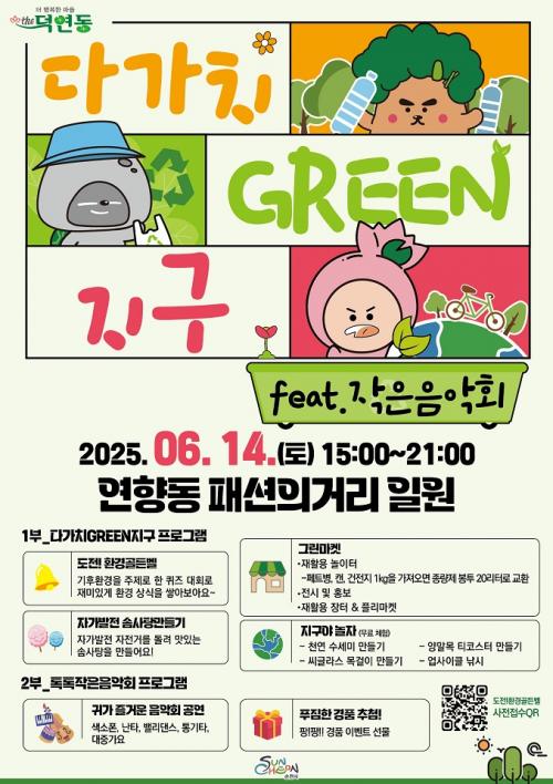 [½Åµ¿¾Æ¹æ¼Û ¼øÃµ=±è¿ëÈÆ ±âÀÚ] ¼øÃµ½Ã ´ö¿¬µ¿(µ¿Àå ·ù¿µ±Ç)Àº ¿À´Â 14ÀÏ 15½ÃºÎÅÍ 21½Ã±îÁö ¿¬Ç⵿ ÆÐ¼ÇÀÇ °Å¸® ÀÏ¿ø¿¡¼­ ȯ°æ ÀÎ½Ä Á¦°í¿Í Áö¿ª °øµ¿Ã¼ Ȱ¼ºÈ­¸¦ À§ÇØ È¯°æ ¹®Á¦¸¦ À½¾Ç°ú ÇÔ²² Ç®¾îº¸´Â ¡¸´Ù°¡Ä¡ GREEN Áö±¸(feat.ÀÛÀºÀ½¾Çȸ)¡¹¸¦ °³ÃÖÇÑ´Ù. À̹ø¡¦