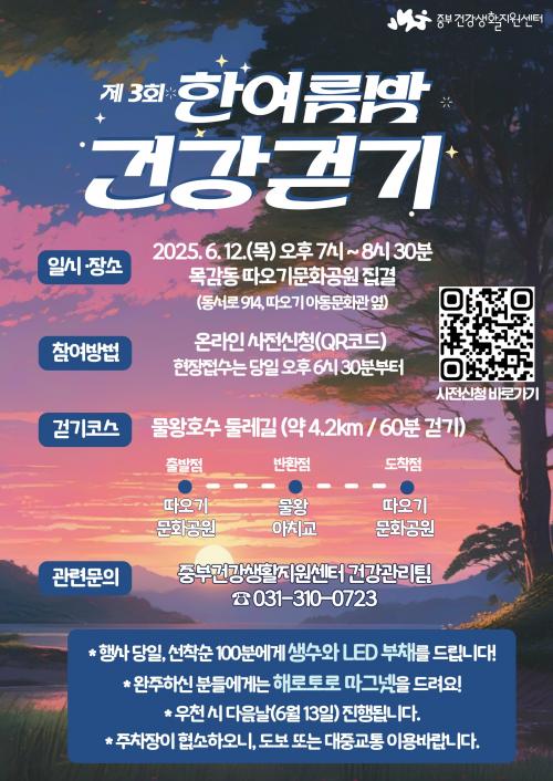 ¡°¹°¿ÕÈ£¼ö ³ëÀ» º¸¸ç ÇÔ²² °É¾î¿ä¡± Á¦3ȸ¡®ÇÑ¿©¸§¹ã °Ç°­°È±â¡¯Çà»ç 12ÀÏ °³ÃÖ