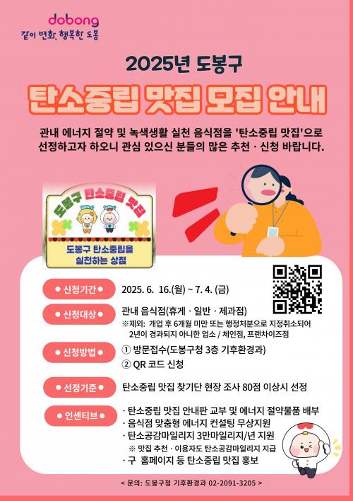 [½Åµ¿¾Æ¹æ¼Û µµºÀ±¸=À̽ŵ¿±âÀÚ] ¼­¿ï µµºÀ±¸°¡ 'ź¼ÒÁ߸³ ¸ÀÁý(ź¼ÒÁ߸³À» ½ÇõÇÏ´Â À½½ÄÁ¡)¡® 50°÷À» ¼±Á¤ÇÑ´Ù. ±¸´Â Áö³­ÇغÎÅÍ Åº¼ÒÁ߸³ ¸ÀÁýÀ» ¼±Á¤ÇØ¿À¸ç Áö¿ª ³» ¿Â½Ç°¡½º °¨ÃàÀ» À¯µµÇØ¿À°í ÀÖ´Ù. ź¼ÒÁ߸³ ¸ÀÁýÀº Æò¼Ò ¿¡³ÊÁö¸¦ Àý¾àÇϰí ÀÏȸ¿ëǰ »ç¿ë¡¦