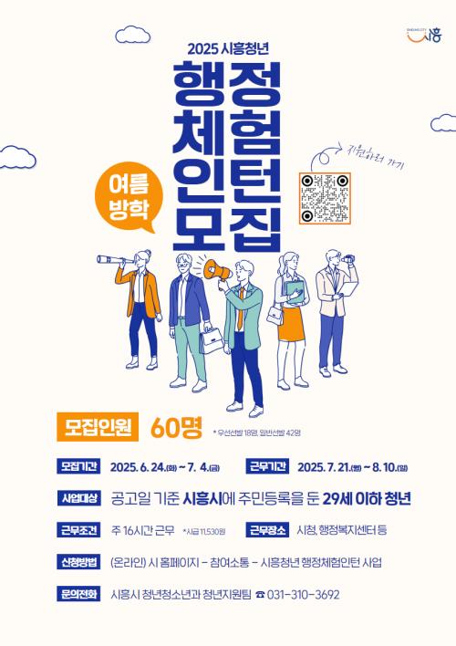[½Åµ¿¾Æ¹æ¼Û ½ÃÈï½Ã=À̽ŵ¿±âÀÚ] ½ÃÈï½Ã´Â ¡®2025³â ¿©¸§¹æÇÐ ÇàÁ¤Ã¼ÇèÀÎÅÏ »ç¾÷(ÀϹݺоß)¡¯À» ¿À´Â 7¿ù 21ÀϺÎÅÍ 8¿ù 10ÀϱîÁö 3ÁÖ°£ ÃßÁøÇÑ´Ù. À̹ø ¿©¸§¹æÇÐ ÇàÁ¤Ã¼ÇèÀÎÅÏ »ç¾÷Àº ½ÃÁ¤¿¡ ´ëÇÑ ÀÌÇØµµ Çâ»ó°ú û³âÀÇ Áø·ÎŽ»ö ¹× ¿ª·® °³¹ß ±âȸ¸¦ Á¦°øÇϱâ À§ÇØ ¡¦
