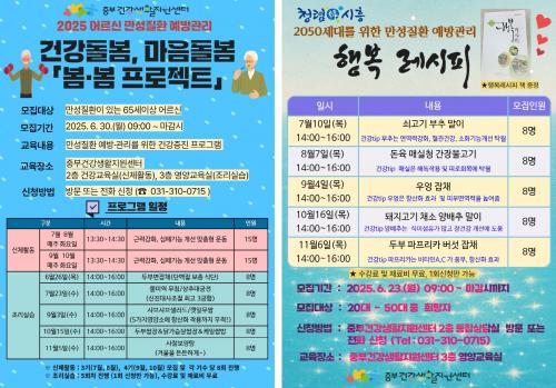 [½Åµ¿¾Æ¹æ¼Û ½ÃÈï½Ã=À̽ŵ¿±âÀÚ] ½ÃÈï½Ã Áߺΰǰ­»ýȰÁö¿ø¼¾ÅÍ´Â ¸¸¼ºÁúȯ ¿¹¹æ°ú °Ç°­ÇÑ »ýȰ½À°ü Çü¼ºÀ» À§ÇØ ¿¬·Éº° ¸ÂÃãÇü °Ç°­ÁõÁø ÇÁ·Î±×·¥À» 7¿ùºÎÅÍ 11¿ù±îÁö ¿î¿µÇÑ´Ù. ÇÁ·Î±×·¥Àº 65¼¼ ÀÌ»ó ¾î¸£½ÅÀ» À§ÇÑ °Ç°­ µ¹º½, ¸¶À½ µ¹º½ ¡®º½¤ýº½ ÇÁ·ÎÁ§Æ®¡¯¿Í 20~¡¦