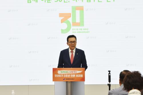 [½Åµ¿¾Æ¹æ¼Û ÀÎõ= À±¹Î½Ä ±âÀÚ]¿¬¼ö±¸(±¸Ã»Àå ÀÌÀçÈ£) ¹Î¼± 8±â°¡ Ãâ¹üÇÑ Áö 3³âÀ̶ó´Â ½Ã°£ÀÌ Áö³µ´Ù. ¹Î¼± 8±â´Â ¶§·Î´Â ºÒÆí, ºÎ´çÇÑ Á¦µµµé°ú ¸Â¼­ ¸ñ¼Ò¸®¸¦ ³ô¿´°í, ¶§·Î´Â Á÷¿øµé°ú ÇÔ²² ¿¬¼ö±¸ ¹ßÀüÀ» À§ÇØ Ä¡¿­ÇÏ°Ô °í¹ÎÇϱ⵵ Çß´Ù. ¹Î¼± 8±â 3ÁÖ³âÀ» ¸Â¾Æ ¿¬¡¦
